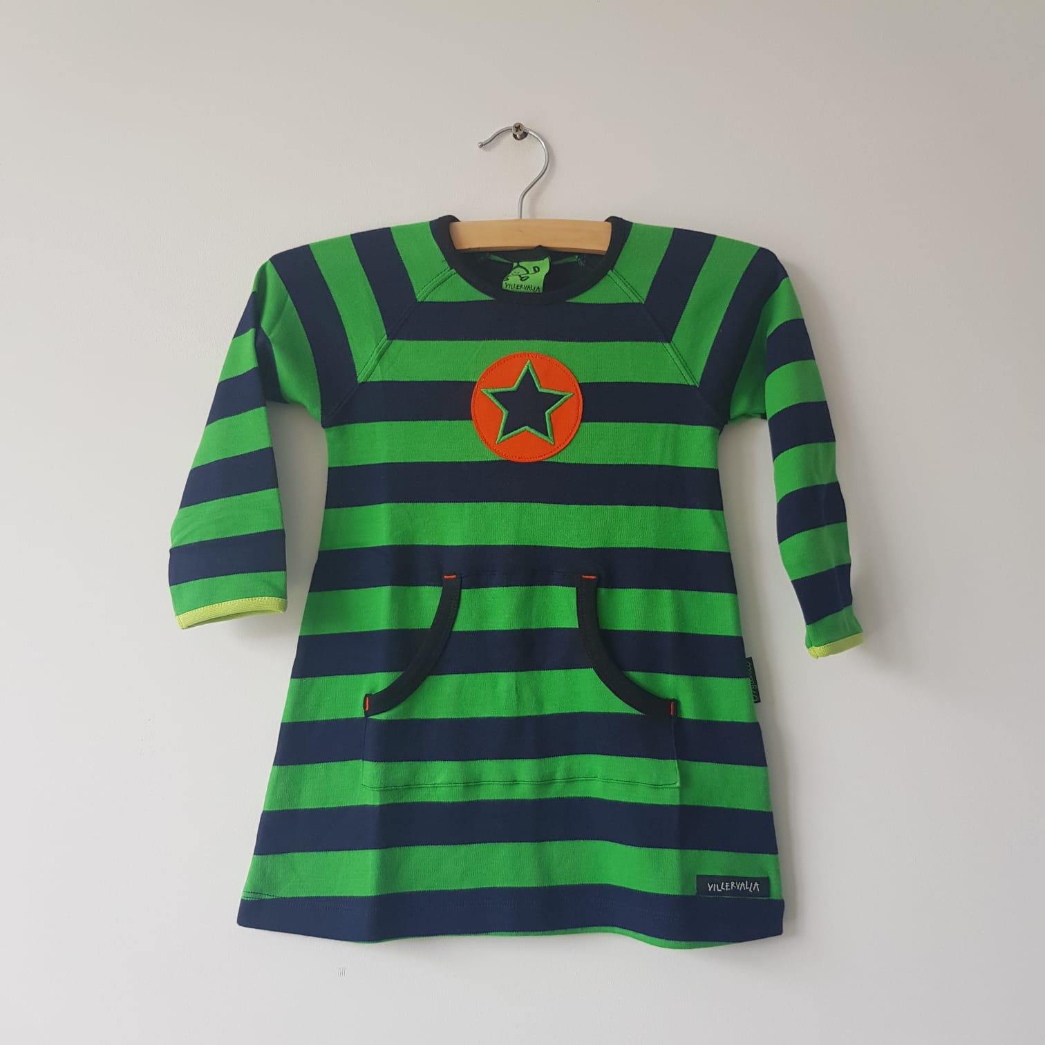 €10.00 €27.50Villervalla - Dress Longsleeve Stripes Star Navy Basil with Pocket Jurk Strepen Blauw Groen