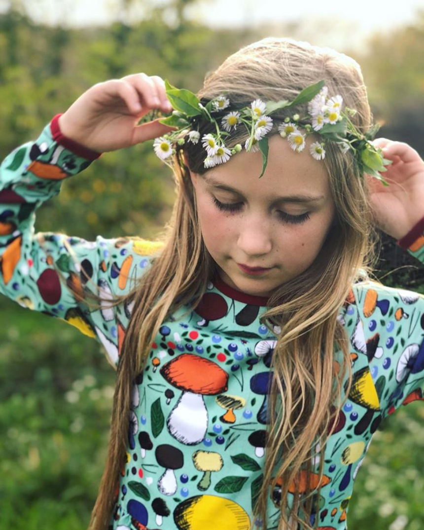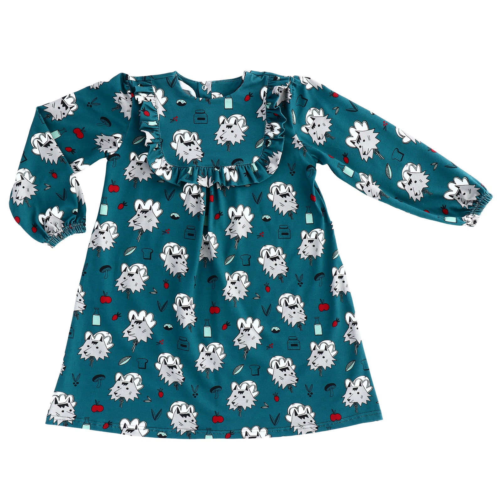 €32.50Duns Sweden - Longsleeve Gather Dress Mushroom Forest Jade - Zwierjurk Paddenstoelen