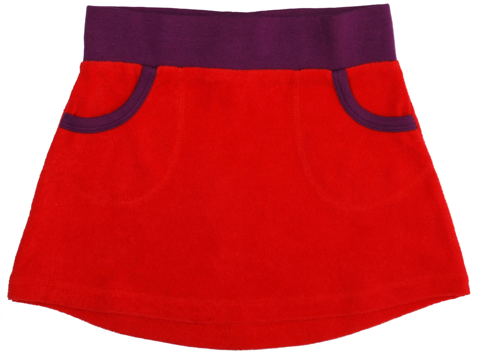 €24.95Duns Sweden Skirt Terry Red Purple - Rood badstof rokje met paarse boord