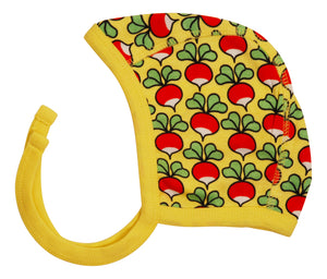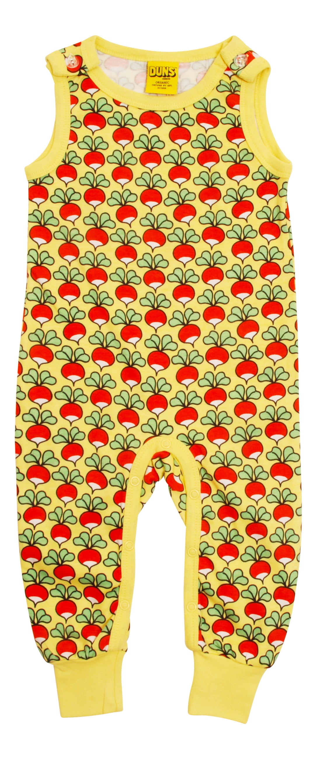 Complete set dungarees & bonnet in Radishes Yellow Cream van Duns Sweden