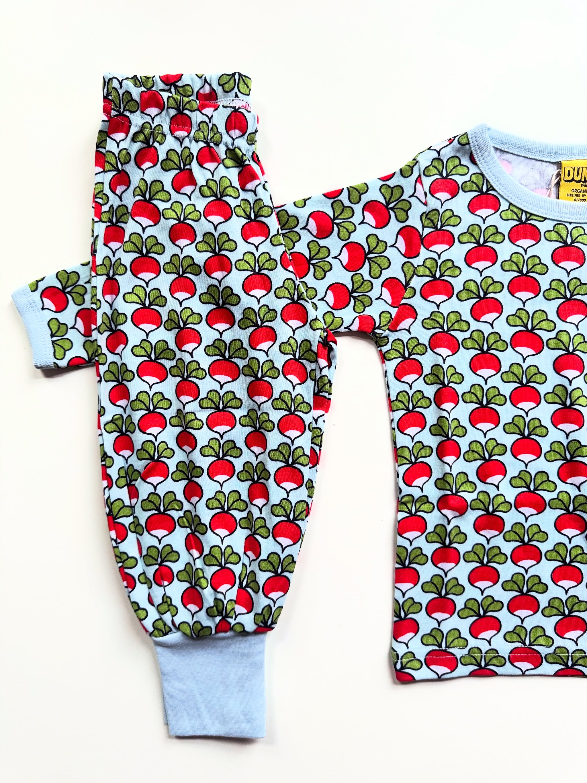 Complete set longsleeve & baggypants in Radishes Egg Blue van Duns Sweden