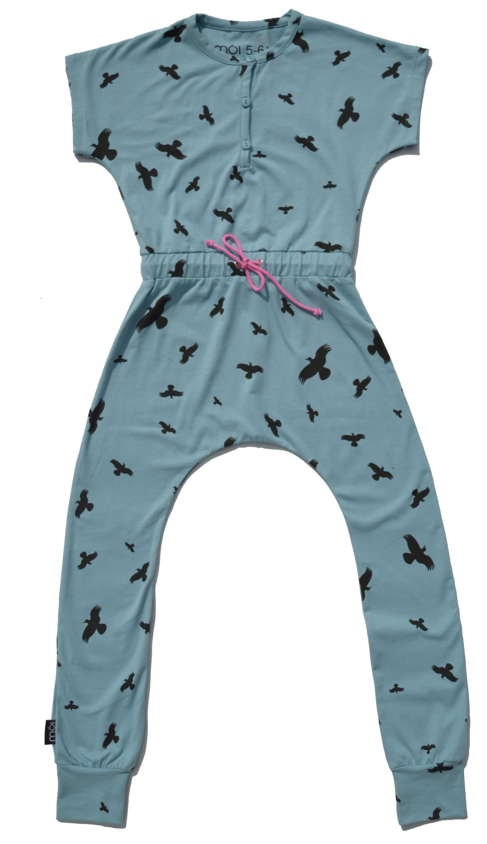 €26.21 €34.95Moi - Jumpsuit Shortsleeve Bird Sea Blue - Zomperpak Korte Mouwen Vogels Silhouetten Blauw