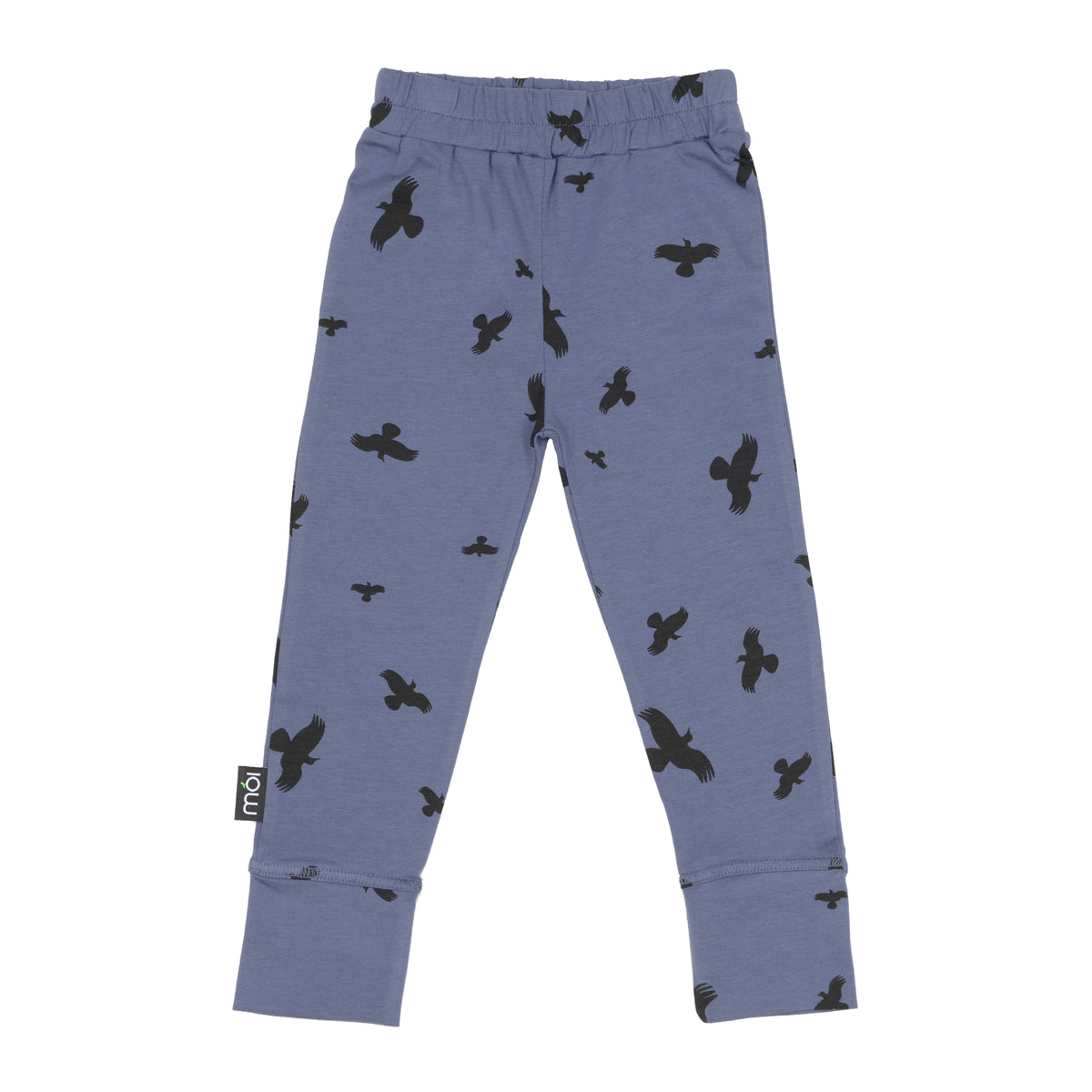 Legging van Moi van 95% organic cotton en 5% elasthan in donkerpaars met Bird print in zwart. De legging heeft cuffs waardoor deze mooi aansluit rond de benen en is gemaakt van heerlijk zacht en comfortabel materiaal.