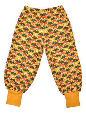 Super leuke baggy broek met brede elastische boorden (gemaakt van t-shirt stof) van 100% biologisch GOTS gecertificeerd katoen van het Zweedse kinderkleding merk Duns Sweden.
