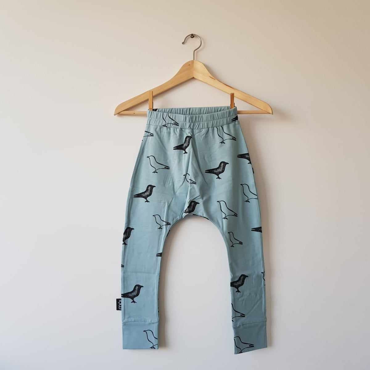 Moi의 헐렁한 팬츠는 유기농 면 95%, 엘라스테인 5%로 만들어졌으며, 부드러운 블루 색상에 새로 가득한 버디 프린트가 특징입니다. 팬티는 밑단이 낮고 발 주위에 단추가 달려 있습니다. 그래서 매우 편안합니다. 매우 부드러운 소재로 만들어졌습니다.