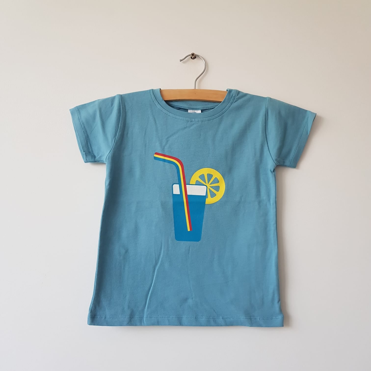 T-shirt van Dis une Couleur in mooi zachtblauw met Lemonade print van een glas ranja met een rietje en een schijf citrus. De kleinere maatjes (80 en 86) hebben twee drukknoopjes op de schouder, waardoor het shirtje makkelijk aan en uit kan. Gemaakt van organic cotton met een vleugje elastane. Het materiaal is heerlijk zacht. Let op: valt klein! Kies 1 of zelfs 2 maten groter.