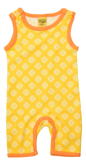 Heerlijke zacht pak zonder mouwen en met korte broekspijpjes (leuk met effen bijpassende romper eronder) van 100% biologisch GOTS gecertificeerd katoen van het Zweedse kinderkleding merk Duns Sweden.
