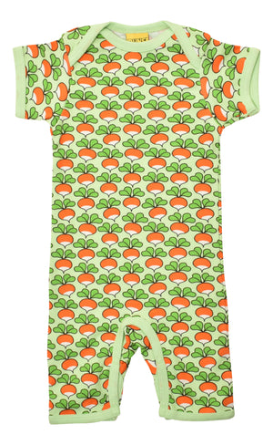 De summersuits hebben drukknoopjes tussen de benen. Daardoor zijn ze gemakkelijk open en dicht te maken bij het verschonen van de luiers.