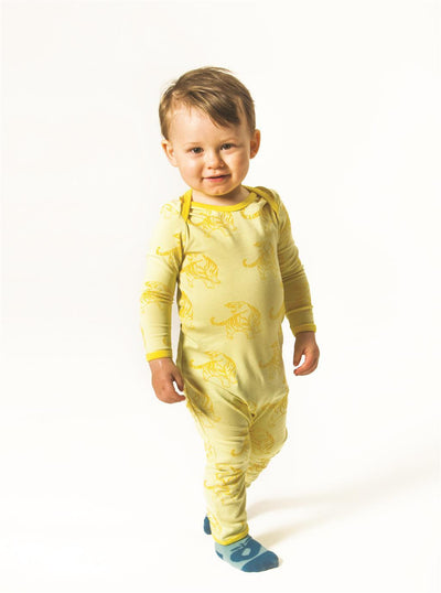 Licht gele jumpsuit met ton-sur-ton gele tijgers erop. Smafolk is een van de bekendste kinderkleding merken uit Denemarken en kenmerkt zich door de all-over-prints. GOEDvanToen verkoopt een groot aanbod van dit Scandinavische kinderkledingmerk online in Nederland en in de winkel GOED in Amsterdam.