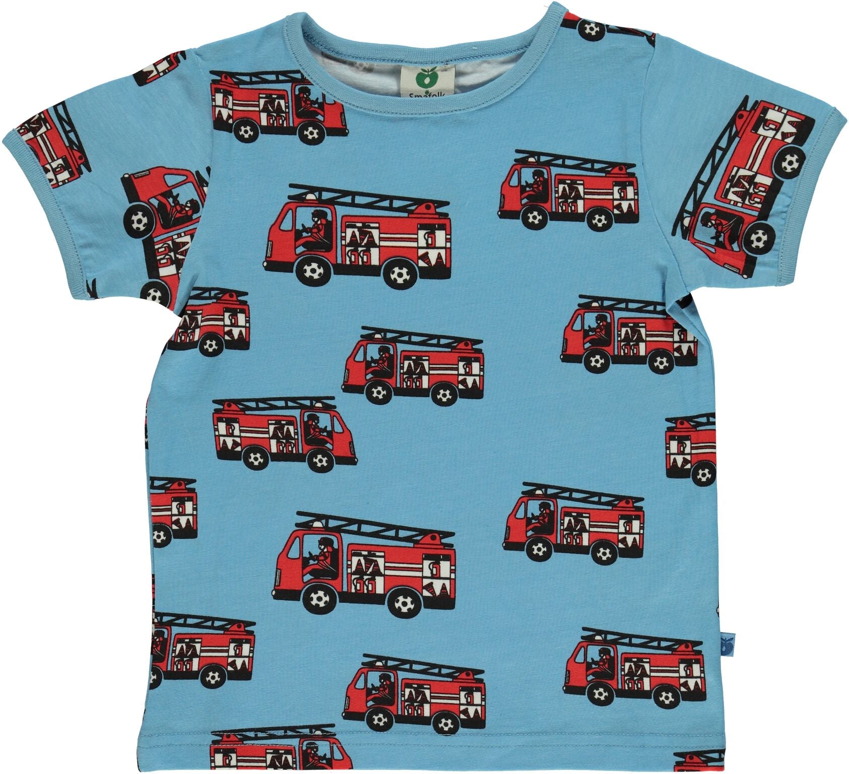 Lekker vrolijk shirt vol rode brandweerauto's van het Deense merk Smafolk.